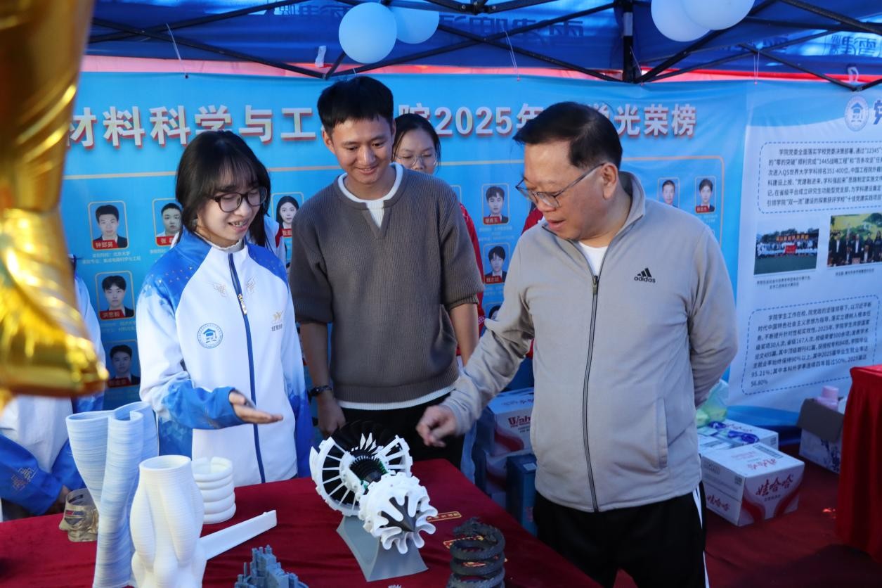 校党委陈国龙书记莅临天美传媒 运动会大本营,实地察看赛事组织情况。在大本营,陈国龙书记仔细询问赛事筹备、师生参与度等细节,与工作人员亲切交流并肯定大家的付出。途中,陈国龙书记驻足天美传媒 3D打印成果展示区,听取技术原理与学生创新实践介绍,对专业知识与校园活动的结合给予高度评价。领导们的关怀与嘱托,让全体师生备受鼓舞,处处激荡着奋勇拼搏、团结向上的澎湃激情。