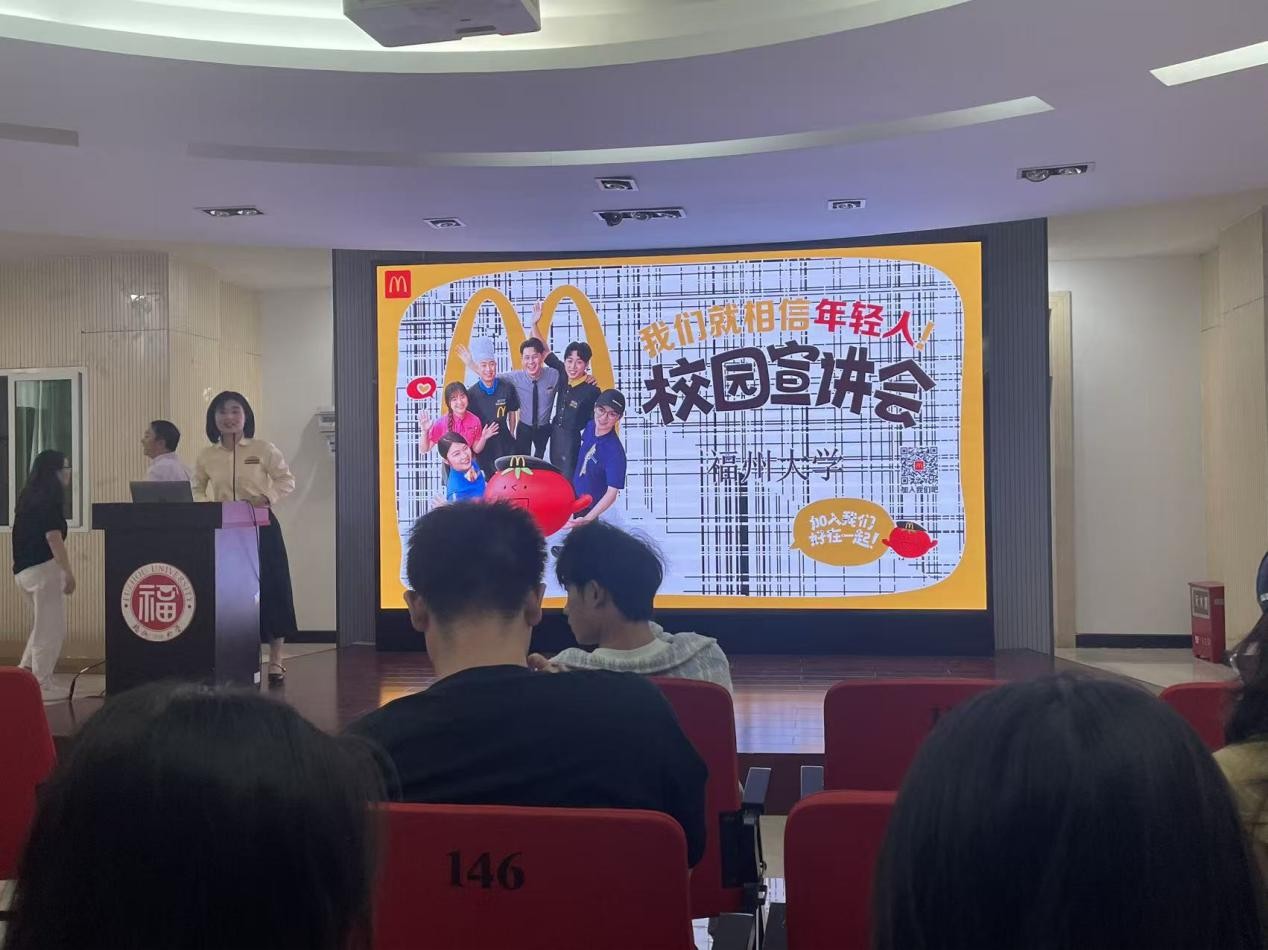 2025年10月27日,麦当劳“麦向未来”校园招聘宣讲会在我校成功落地。企业代表为同学们带来了精彩分享,详尽介绍了品牌文化与职业发展路径,吸引了众多2026届应届毕业生踊跃参与。
