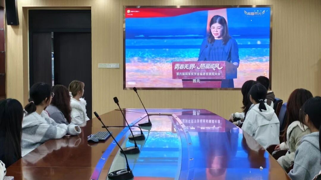 为深入贯彻国家资助育人政策精神,充分发挥青年榜样的引领作用,引导同学们厚植家国情怀、明确奋斗航向,11月21日20时,天美传媒 组织同学们共赴一场“云端盛会”——观看“青春无界 热爱成风”第六届国家奖学金福建省颁奖大会。