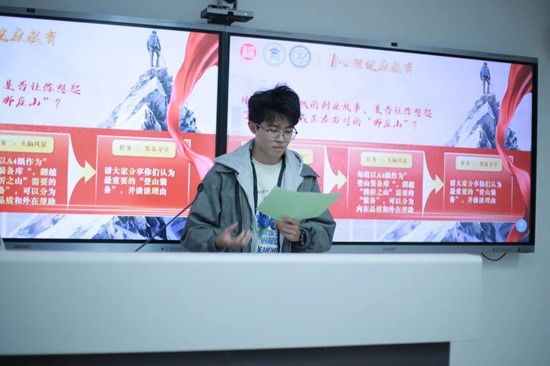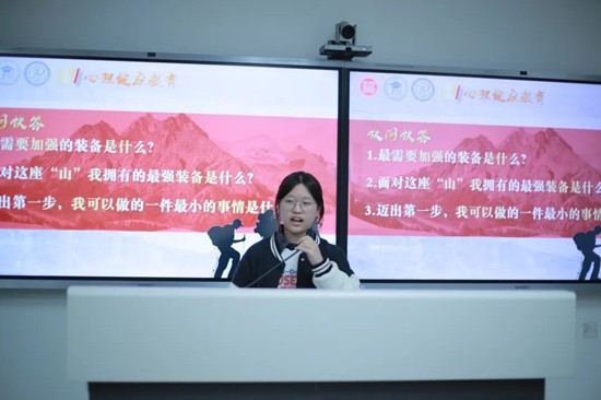 心理健康教育环节,心理委员陈欣怡以蜜雪冰城创始人屡遭挫折却坚守创业的故事为引,引导同学们正视成长路上的“挫折之山”。