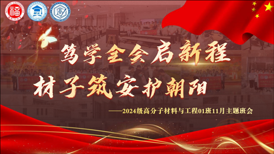 11月19日晚,2024级高分子材料与工程1班“笃学全会启新程·材子筑安护朝阳”主题班会顺利召开。学院党委沈庆斌副书记、班主任林腾飞副教授、学院辅导员陈小玲老师受邀出席,班会由班长陈梓坤主持,2024级高分子1班全体同学参会。