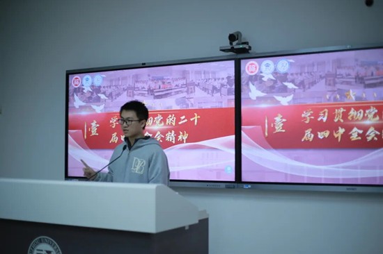班会伊始,红帆先锋班的陈宇宸率先领学党的二十届四中全会精神。他以教育视角为切入点,深度解读党的二十届四中全会覆盖广、部署细的特点,阐明青年学子当以全会精神校准奋斗方向,在科技强国建设的时代赛道上勇毅争先,跑出青春加速度,用笃行实干托举起民族复兴的科技脊梁,书写新时代青年的使命答卷。