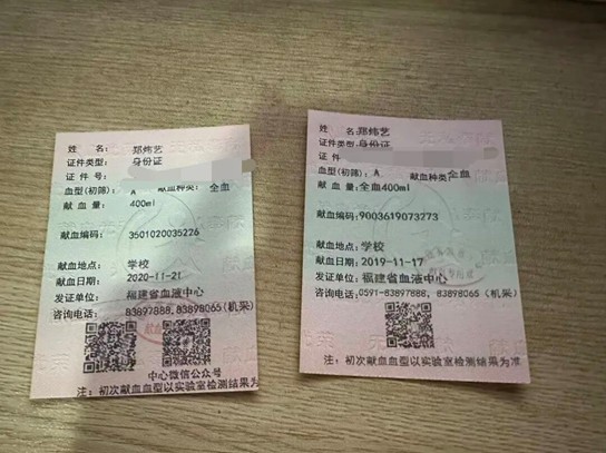 郑炜艺同学用一次次献血的举动,将善意落到了实处: