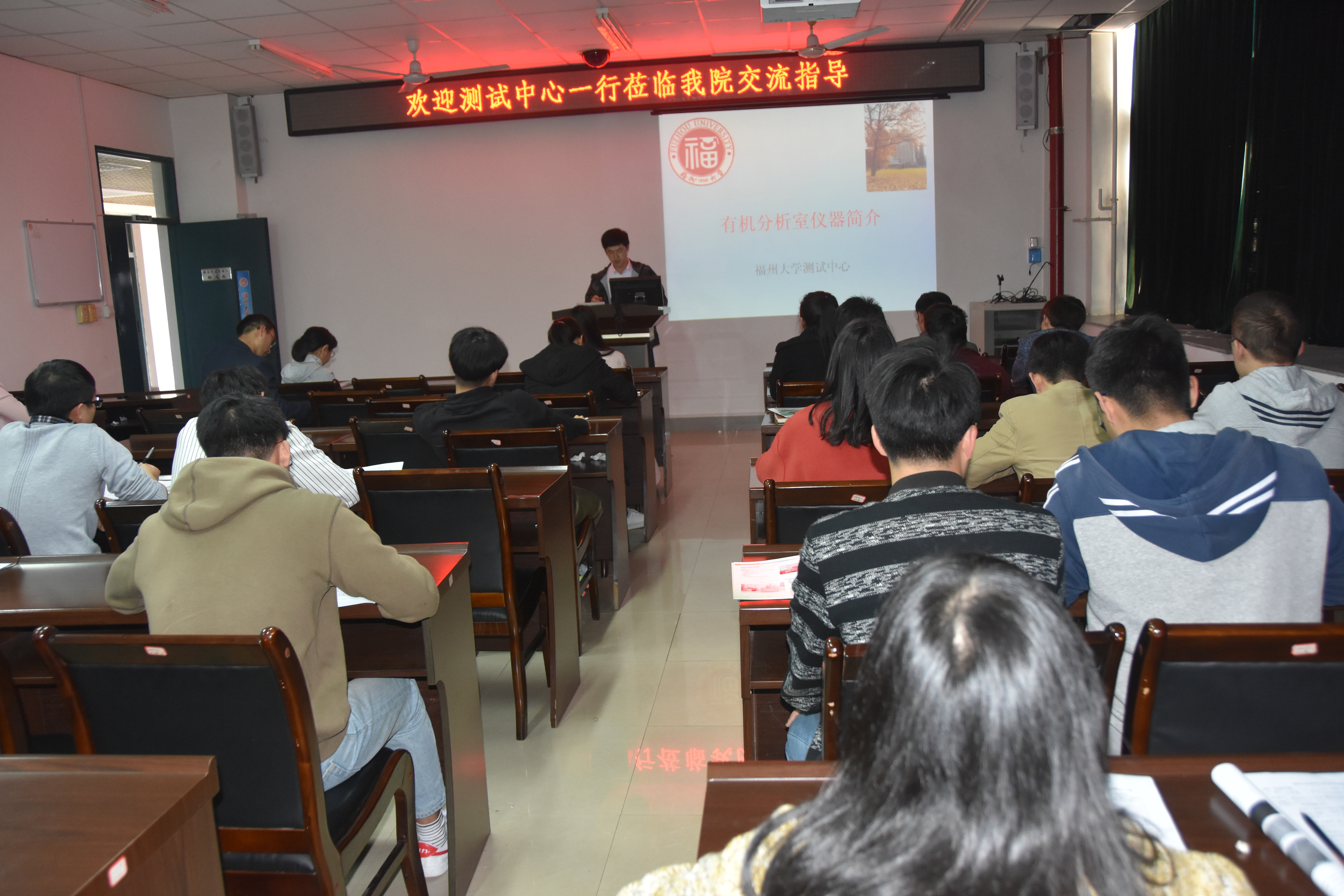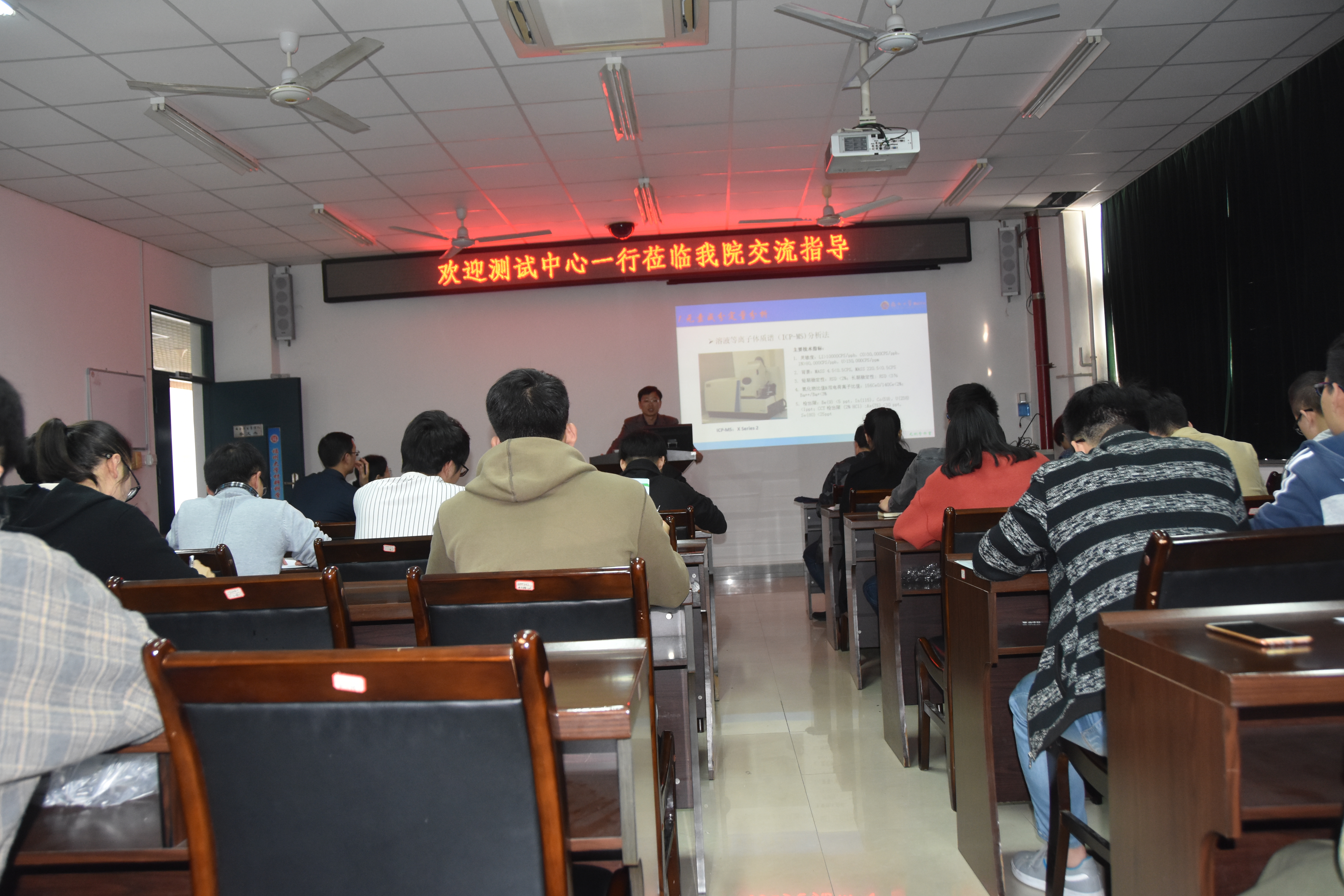 会上,测试中心培训室主任杨晓华老师介绍了测试中心的基本情况和大型仪器开放共享服务平台的使用情况,表示希望进一步加强与师生之间的合作,共同解决技术难题。高级工程师周巧琴介绍了材料微区分析实验室的师资情况和设备情况,以及相关设备在材料的纤维组织形貌的观察、微区成分分析与研究等领域的应用。高级工程工程师黄清明博士介绍了无机分析室的主要设备和基本情况,通过具体的案例详细介绍了粉末衍射仪等设备在无机材料结构测试与分析等领域的应用。高级工程师陈天文博士介绍了有机药物分析室的主要设备和职能,详细介绍了荧光光谱仪、电化学工作站等设备在相关研究中的应用。高级工程师卢巧梅博士介绍了质谱与生命分析室、常规化仪器开放共享平台的基本情况,以及相关设备在食品、要去和环境分析等领域的应用。会后,天美传媒 师生与测试中心的老师就相关具体问题展开进一步的交流和探讨。