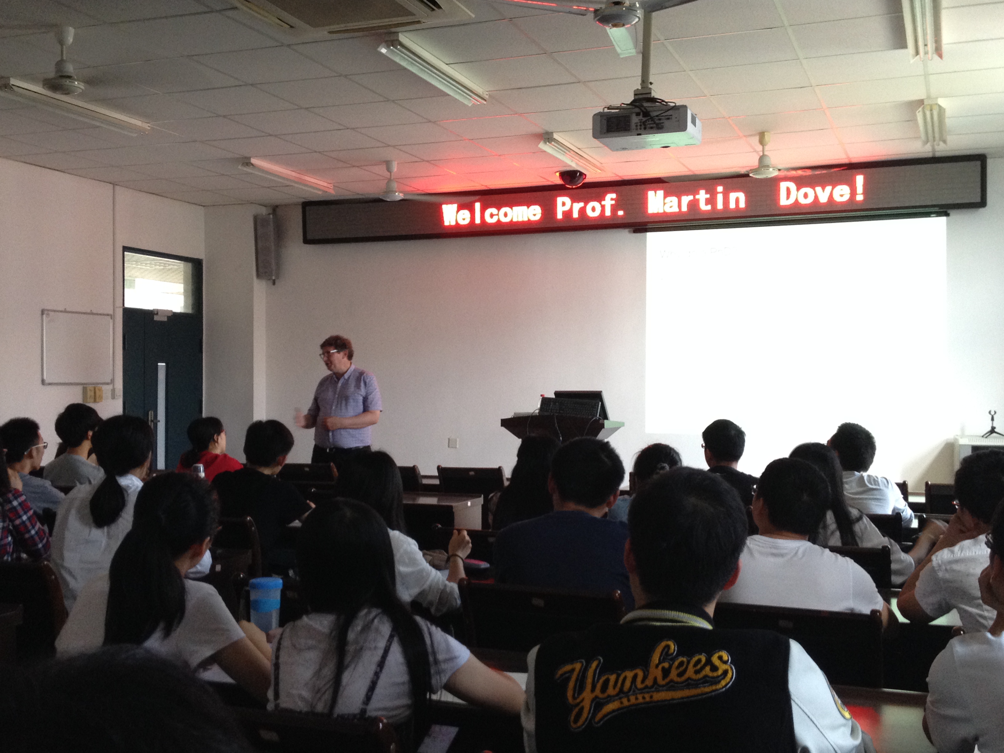 Dove教授在材料科学楼404会议室作了题为“An introduction to neutron scattering”和“Studying for a PhD in London”等系列报告。Dove教授简要介绍了中子散射在材料研究中的作用,以及实验测试与结构模拟的自洽;鼓励同学们充分利用国内有利的测试手段,努力攀登材料学研究的高峰。另外,他就赴英攻读博士的注意事项与师生进行了热烈交流,激发同学们积极参与国际交流合作,加强跨学科、跨国际学习,自我培养和完善,做好个人职业规划。大家受益匪浅。此外,Dove教授对联合培养等相关问题进行了解答,并欢迎老师同学们赴英交流。