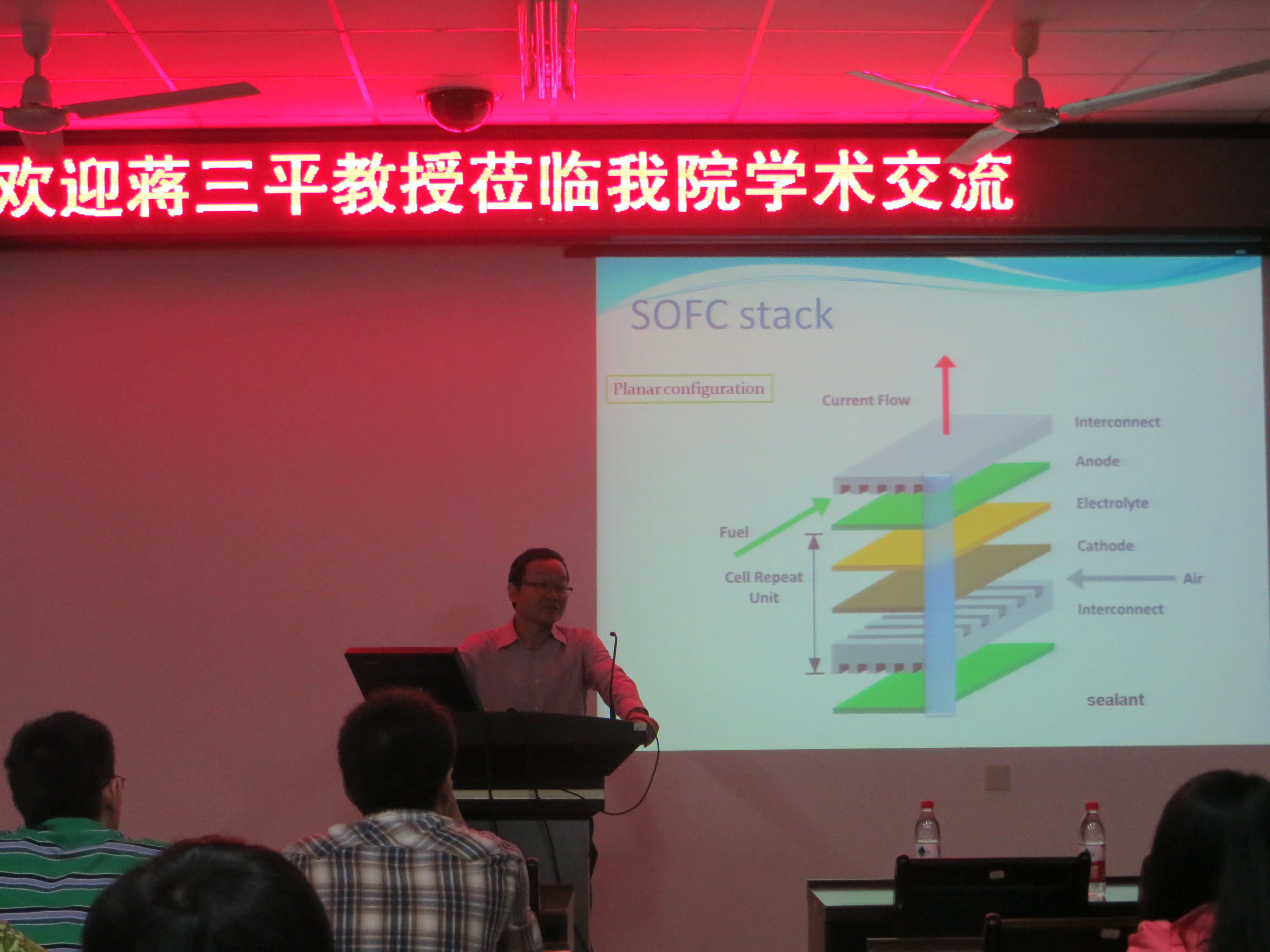 上午十时许,蒋三平教授在材料科学楼404会议室作了题为“固体氧化物燃料电池中阴极的毒化——铬、錋和硫”的学术报告。蒋三平教授围绕自己近年来的研究成果,以燃料电池的起源开篇,简单介绍了固体氧化物燃料电池的工作原理、存在问题以及目前该方向的研究热点;接着详细介绍了固体氧化物燃料电池阴极沉积和毒化现象以及沉积、毒化机制研究;随后还介绍了耐污染的正极材料。在最后蒋三平教授对天美传媒 师生提出的问题做了认真细致的回答。
