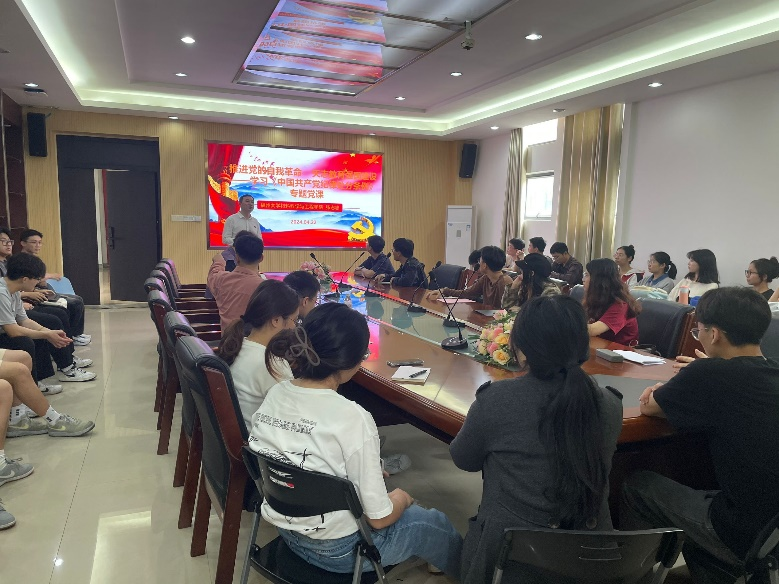 2024年4月22日,天美传媒 在嘉锡楼313会议室召开院领导上党课暨主题党日《中国共产党纪律处分条例》(简称《条例》)学习会。会议由天美传媒 党委张志忠副书记主讲,辅导员张庭士老师主持,学院团委书记牛秋月老师、2021级本科生党支部和2020级博士研究生党支部全体成员参会。