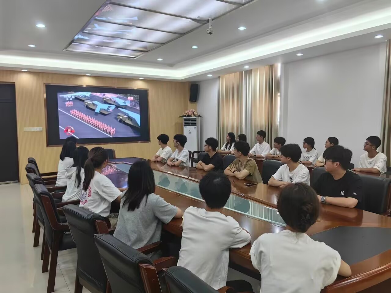 2025年9月3日上午9时,纪念中国人民抗日战争暨世界反法西斯战争胜利80周年大会在北京天安门广场隆重举行。天美传媒 积极响应,在嘉锡楼313会议室开展九三阅兵主题观礼座谈会。学院团委副书记张庭士老师、辅导员张丽娟老师、肖凯尹老师以及学生代表共同收看大会直播,铭记历史,见证祖国繁荣。