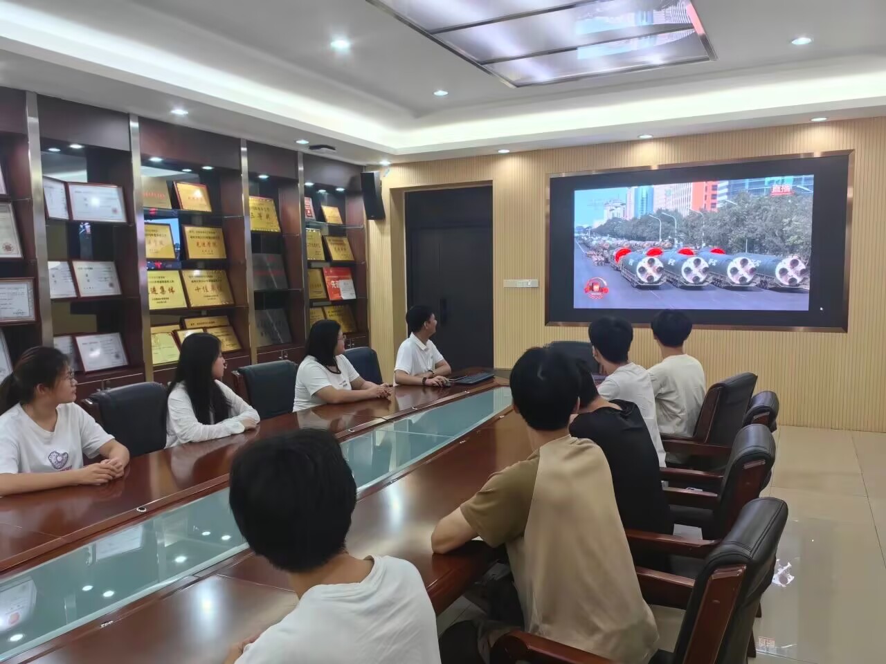 当阅兵仪式正式拉开帷幕,激昂的《义勇军进行曲》响彻全场。在场师生们自发起身,齐声高唱国歌,歌声嘹亮,包含着对祖国的深情热爱。观看过程中,师生们全神贯注。整齐划一的受阅方阵迈着铿锵有力的步伐阔步向前,展现出人民军队威武之师、文明之师、胜利之师的形象;先进精良的武器装备依次亮相,彰显着我国强大的军事硬实力。当我国自主研发的新型武器装备震撼登场时,师生们深刻感受到祖国国防事业的飞速发展,会议室现场响起阵阵掌声,自豪感在师生们心中油然而生。