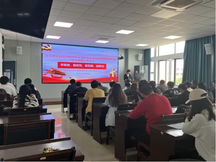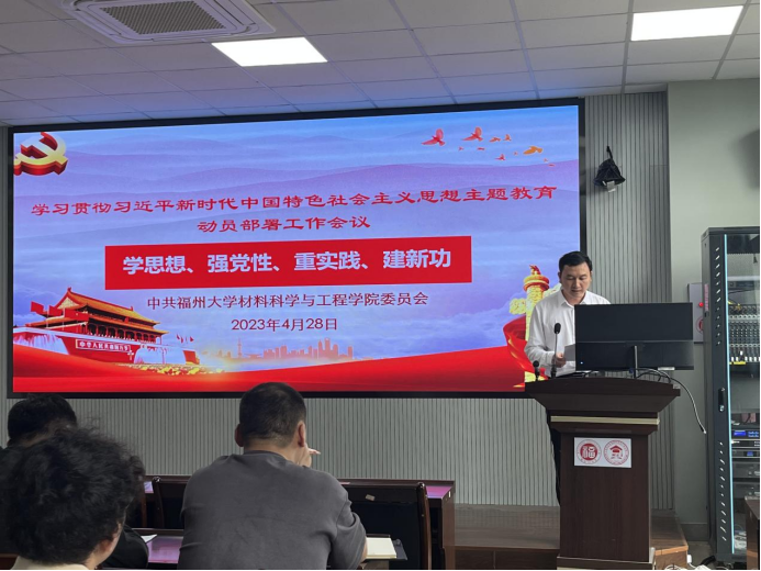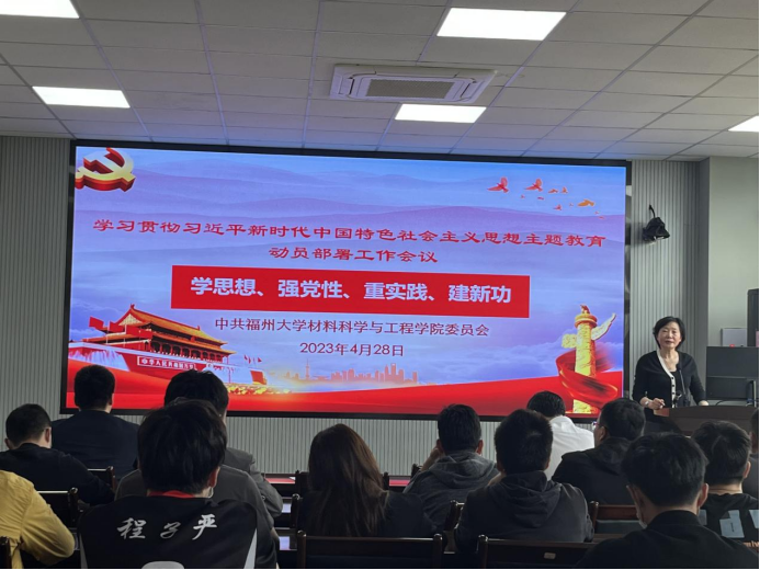 2023年4月28日下午,材料学院在材料楼404会议室召开学习贯彻习近平新时代中国特色社会主义思想主题教育动员部署会,会议由院党委书记倪朝霞主持,学院党委领导班子成员及各党支部书记参会。